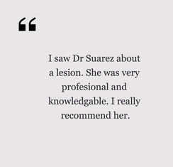 Dr Suarez provides private dermatology consultations in Winchester and the surrounding Hampshire and Wiltshire area. She has extensive experience treating a broad range of skin conditions including psoriasis, eczema, acne, rosacea, hair loss and acute rashes. She has a specialist interest in skin cancer diagnosis and surgical removal of all lesions, both cancerous and non-cancerous.